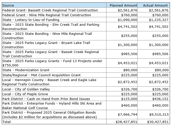 Item 5G. Authorization to Prepare for Issuance of 2025 General Obligation BondsShare Item 5G. Authorization to Prepare for Issuance of 2025 General Obligation Bonds on Facebook Share Item 5G. Authorization to Prepare for Issuance of 2025 General Obligation Bonds on Twitter Share Item 5G. Authorization to Prepare for Issuance of 2025 General Obligation Bonds on Linkedin Email Item 5G. Authorization to Prepare for Issuance of 2025 General Obligation Bonds linkCLOSED: This discussion has concluded.Superintendent's Recommendation: MOTION TO AUTHORIZE THE CHIEF FINANCIAL OFFICER TO PROCEED WITH THE PREPARATION OF AN OFFICIAL STATEMENT, SET SALE CONDITIONS AND SOLICIT BIDS FOR THE 2025 GENERAL OBLIGATION BONDS IN AN AMOUNT OF $9,325,000. Prepared By: Shaan Hamilton, Chief Financial Officer and Kelly Grissman, Director of Planning Background: On December 19, 2024, the Board of Commissioners approved the 2025 Asset Management Program (AMP) totaling $28,427,851. Staff is recommending $2,000,000 be added to the amount to be financed to replenish the funds available for land acquisition. The Land Acquisition, Betterment and Development (LADB) Fund is used to pay the Park District's share of land acquisition costs. As we have done in the past, we have used bond proceeds to replenish the balance in this account. The LADB Fund has an available cash balance as of October 1, 2025 of $1,429,491 for future land acquisitions. The LADB has no on-going revenue sources except for interest earnings (which are approximately $40,000 per year). Planning Director Kelly Grissman is estimating that over the next 18 months we will need $1,355,498 for anticipated acquisitions leaving $73,993 available for any new acquisitions; thus we would have almost no money for potential acquisitions until we replenish the fund. Acquisition activity has increased dramatically in the last two years as higher interest rates have made it more challenging for sellers to find buyers. Staff expects this trend to continue meaning funds could be depleted or acquisition opportunities lost before June of 2027. The AMP is funded by a variety of sources including Park District bonds, cash on hand and federal, state and local grants. The following is a summary of the funding sources: The changes in funding are a result of the Park District's Lottery-in-lieu-of collections exceeding the planned amount, reallocating existing funds from prior bond issues to fund a portion of the projects in the 2025 AMP and including an additional $2 million in bonding for land acquisition costs. The $9,325,000 in bonds will generate $9,510,315 in proceeds to fund project costs since the bonds are expected to sell at a premium (selling above face value) due to the Park District's excellent bond rating and current market conditions. The Park District currently maintains a Aaa rating, the highest rating possible, from Moody's Investor Services. This rating allows the Park District to borrow at the lowest possible interest rate. In addition to the amount needed for the project costs, the bonds need to fund the cost of issuance, which includes fees to have the bonds rated, the work of our fiscal consultant, bond counsel fees and the underwriter's discount ("profit margin" for reselling bonds to the public). These fees and charges are estimated to be $68,000. The bonds also include the cost of the first interest payment (capitalized interest) of $297,882, which is due prior to the collection of property taxes in 2026. The Bonds are recommended to be 26-year bonds in order to maintain an average property tax levy of $675,000 over the life of the bonds. The following is a summary of the proposed Bonds: The attached "Debt Service Projection Report" shows how this proposed bond issue impacts future debt service tax levies. The Park District's limit on debt outstanding without voter approval is one-tenth of one percent of the Park District's taxable value, or $185,771,885. Including the proposed Bonds, the total outstanding bonded debt for the Park District will be $63,385,000. The amount of bonds scheduled to be retired during the next five years (including the proposed bonds) is as follows: These maturities represent 51% of the Park District's outstanding total bonded debt. This is a high percentage and is highlighted as a positive factor each time Moody's rates our bonds. Next Steps If the proposed motion is approved, the Board will be presented a resolution awarding the sale of the Bonds at the November 13, 2025, Board meeting. The resolution will award the Bonds to the lowest bidder, set the interest rates and require the Board to levy taxes in 2025 through 2050 to fund annual payments. Approval of the recommended motion is the first step in the bond process. If approved, the Chief Financial Officer will begin working with the Park District's fiscal advisor and bond counsel to prepare an official statement and solicit bids for the bonds. It is important for Commissioners to understand that the bond market views the issuance of an official statement and receipt of bids as a commitment by the Park District to complete the bond sale. Failure to complete the sale would adversely impact the Park District's ability to issue bonds in the future. Relationship to the System Plan: The Request for Action supports the following goal(s) of the System Plan: Goal 2: Parks Matter Goal 3: Lead by Example by financing park improvements as part of a well-planned and managed long-term debt strategy. Attachments: